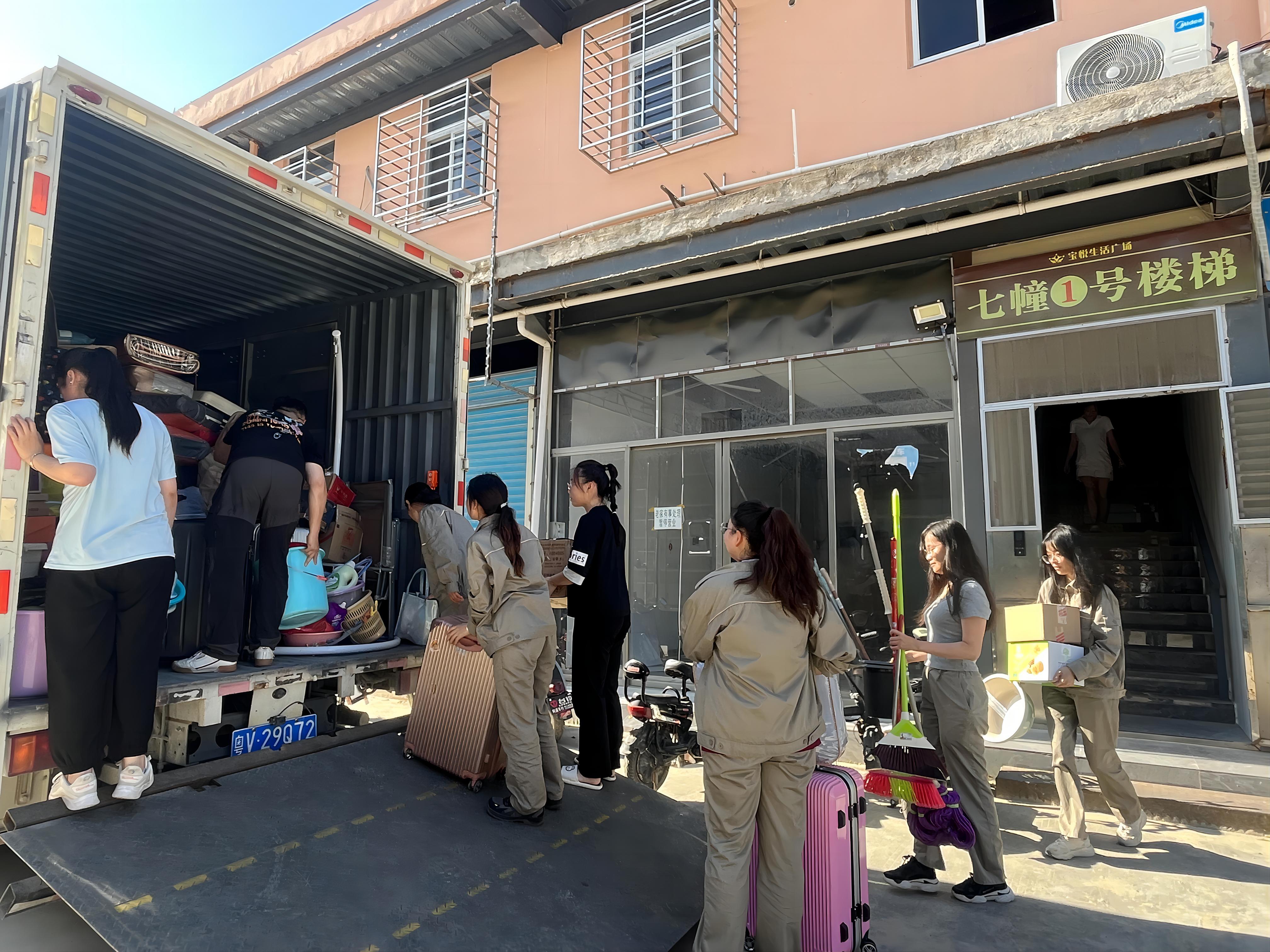 定下房源之后,员工们对新宿舍的期待值拉满,新宿舍成了大家讨论的热点话题:“新宿舍几人间啊?”“可以自己选室友吗?”“听说新宿舍旁边有肯德基!”“宿舍有阳台吗?”经过一段时间的精心准备,至秋分这天,新宿舍通水通电,食堂也全部装修完毕,具备入住条件,公司通知全体员工准备搬迁。在一片欢腾声中,大家回到旧宿舍认真打包行李物品,忙得热火朝天。在女生宿舍搬迁过程中,不少男同事积极帮忙,将行李物品装车,到达新公寓后又卸货,汗如雨下,累并快乐着。