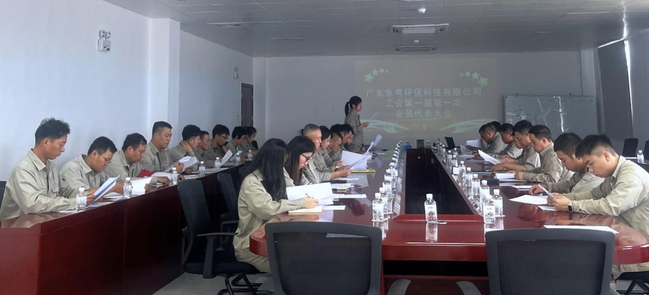 2023年10月14日下午,拼搏体育集团旗下子公司东粤环保工会第一届第一次会员代表大会顺利召开,公司总经理李恩泉、副总经理吴荣华、各部门工会会员代表参加会议。本次会议主题是选举第一届工会委员会和经费审查委员会。