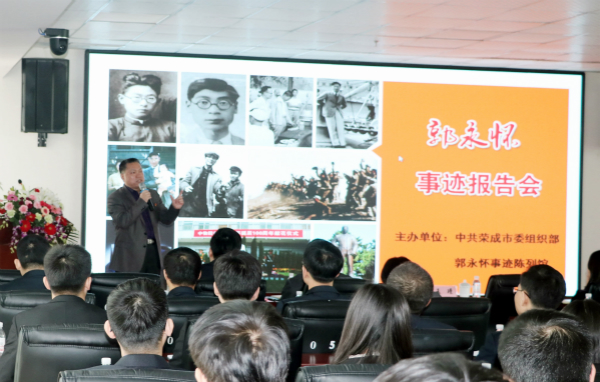 3月8日上午,荣成市委组织部郭永怀先生事迹报告宣讲团来我司举行宣讲活动,讲述郭永怀先进事迹,激励科研人员爱国奋斗。新区工信局副局长李云峰、我司董事长张新功及公司各级管理人员、全体党员等百余人共同聆听了此次宣讲。[ 查看更多 ]