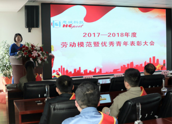 公司2017-2018劳动模范和优秀青年上台领奖
